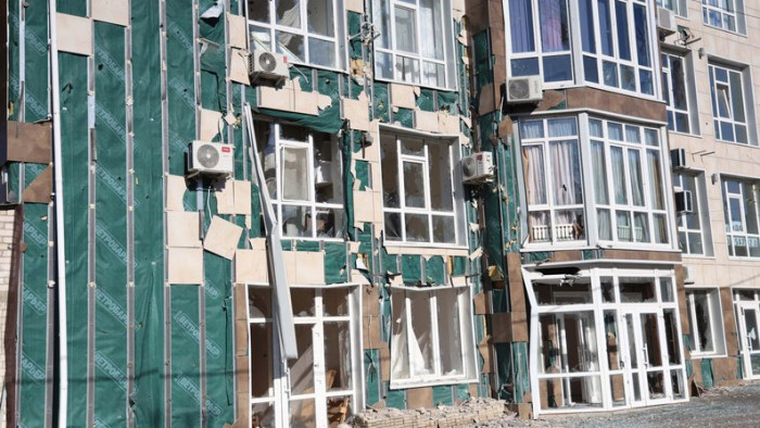 Чоловік говорить, що цей будинок російська армія обстрілює вчетверте. Під час першої атаки загинула дівчина.