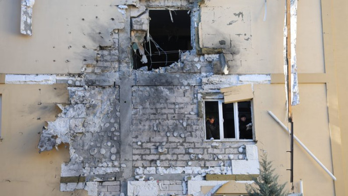 Стіна та вікна навчального закладу у Центральному районі Херсона після обстрілу російськими військами, 30 жовтня 2025 року. Суспільне Херсон/Олександр Корняков