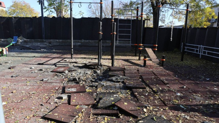 Спортивний майданчик у середмісті Херсона, по якому з артилерії били війська РФ, 30 жовтеня 2025 року. Суспільне Херсон/Олександр Корняков