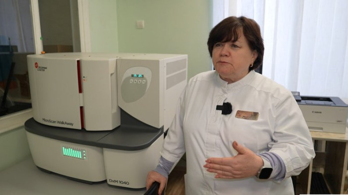 Завідувачка лабораторії лікарні Тетяна Теребило, говорить, що автоматичний бактеріологічний аналізатор має працювати цілодобово та без зупинок. Суспільне Херсон