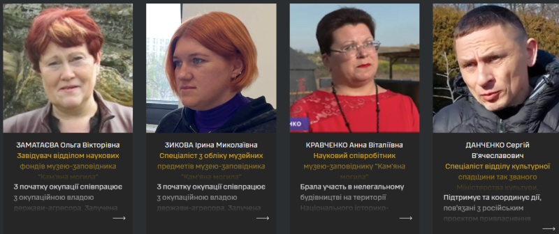 Окремо ГУР надала інформацію про осіб, які були причетні до захоплення Національного історико-археологічного заповідника «Кам’яна Могила», його незаконного включення до складу так званого музею-заповідника «Херсонес Таврійський» у тимчасово окупованому Криму та викрадення музейних експонатів під прикриттям «тимчасових експозицій».