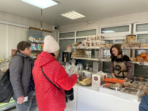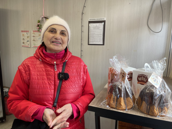 Продавчиня Анжела в одному з магазинів з випічкою до Великодня. Херсон, квітень 2026 року. Суспільне Херсон