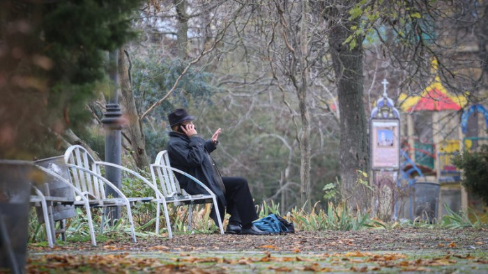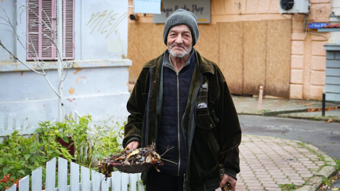 Чоловік сидить на лавці у середмісті Херсона, листопад 2025 року. Суспільне Херсон/Олександр Корняков