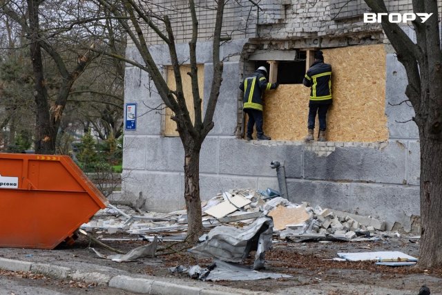 Наслідки удару по перинатальному центрі у Херсоні 4 грудня 2025 року. Усі фото Олександра Андрющенка/»Вгору»