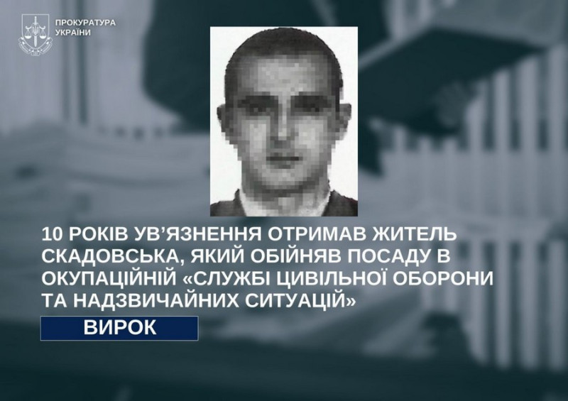 Оголошено заочний вирок жителю окупованого міста Скадовськ, який добровільно погодився працювати в окупаційній «службі цивільної оборони та надзвичайних ситуацій».