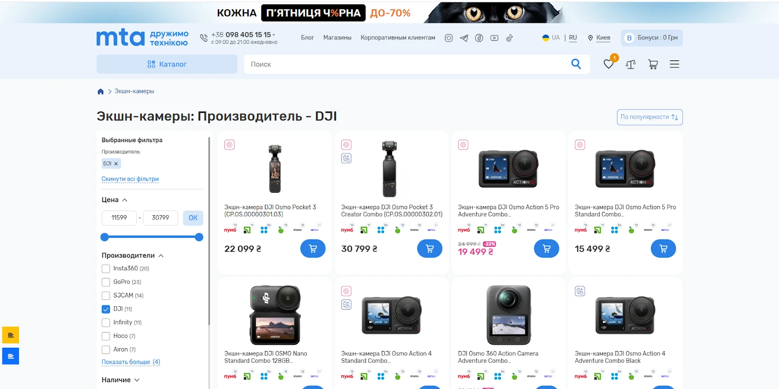 Посетите сайт mta.ua или ближайший магазин, чтобы лично убедиться, что цены на камеры DJI и другую технику здесь самые выгодные.