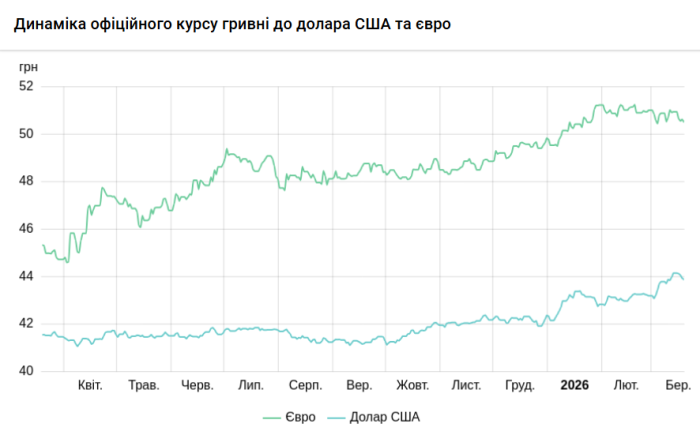 Як повідомляв Укрінформ, у проєкті державного бюджету на 2026 рік уряд закладає розрахунковий середньорічний курс гривні до долара на рівні 45,6 грн/$.