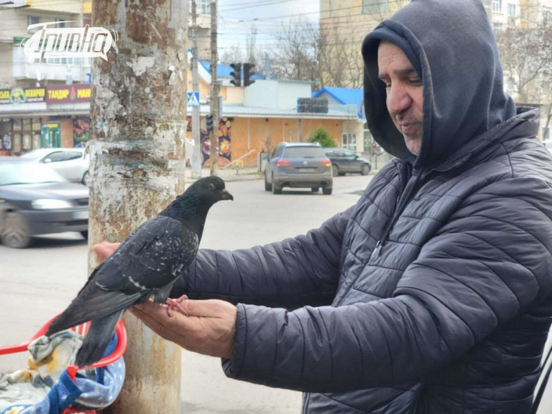 Херсонець годує голуба, грудень 2025 року. Фото: «Гривна»