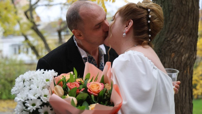 Тут створюють сім’ї й народжують дітей. Ця пара одружилась у третю річницю визволення Херсона, 11 листопада 2025 року. Суспільне Херсон/Олександр Корняков