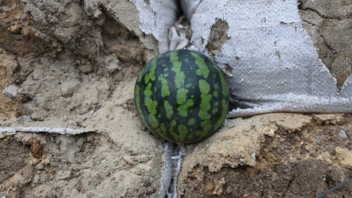 Херсонський кавун на укріпленні з мішків з піском, листопад 2025 року. Суспільне Херсон/Олександр Корняков