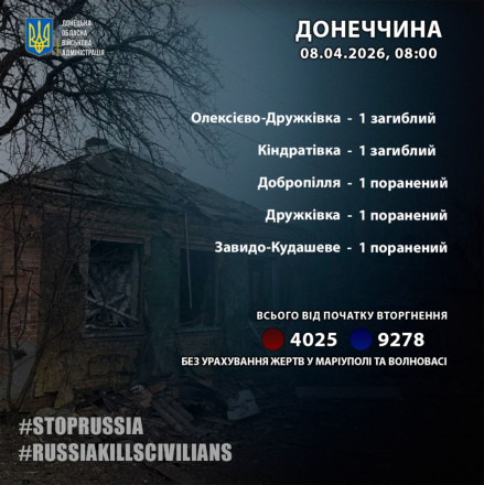 Російська армія минулої доби, 7 квітня, вбила двох жителів Донецької області.