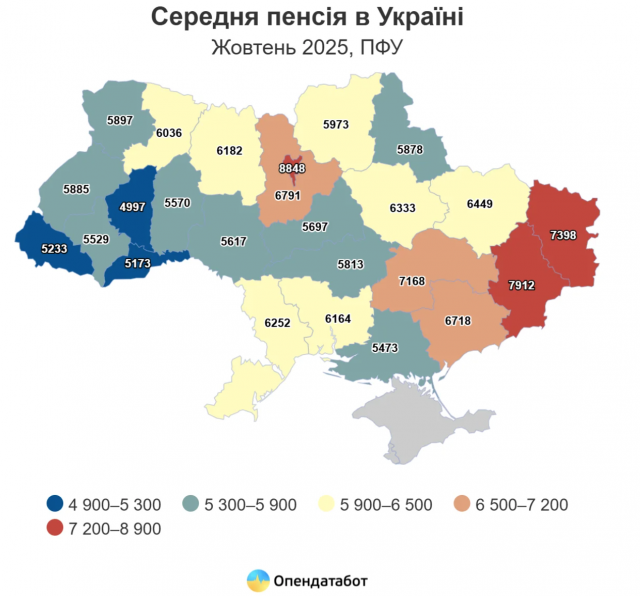 Для порівняння, середня пенсія по країні — 6 400 гривень, а в столиці вона сягає 8 848 гривень, що на 37% більше, ніж у середньому по Україні.