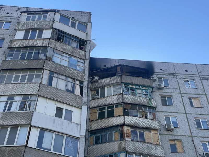 Балкон, на який залетів російський безпілотник. Суспільне Херсон