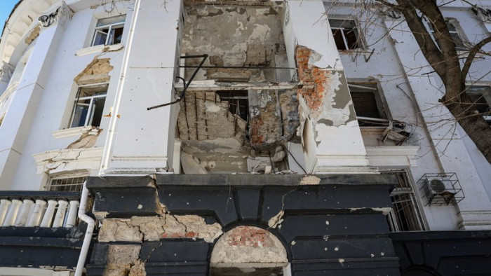 Пошкоджена ударами РФ будівля корпусу Херсонської морської державної академії. Херсон, лютий 2026 року. Суспільне Херсон/Олександр Корняков