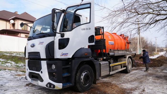 Спецтехніка водоканалу на ділянці під час аварійно-ремонтних робіт. Херсон, лютий 2026 року. Суспільне Херсон