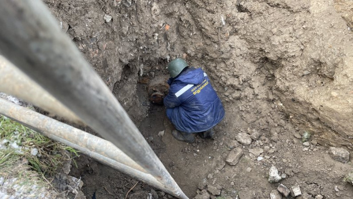 На іншій ділянці працівники водоканалу намагаються ліквідувати витік, який виник через зношеність трубопроводу.