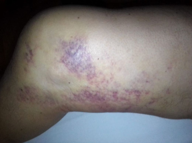 «Кийком по дупі, по ногах. Ноги в мене були такі чорні, як штани. Це називається в них «прийомка». Декого били лінійкою металевою з нержавійки. Били по спині, такі були гематоми на всю спину. Кому що. Мене трубою такою ПВХ били».