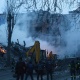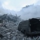 Зруйнована торговельно-офісна будівля і частина прилеглого під'їзду чотириповерхового багатоквартирного будинку.