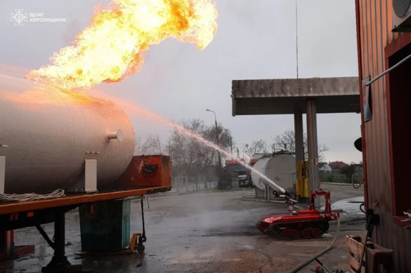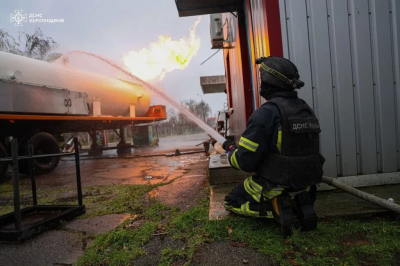 Зазначається. що рятувальники гасили пожежу на автозаправній станції, яку атакували росіяни.