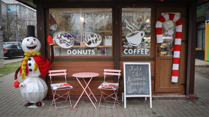 А так зустрічає відвідувачів ще одна кав’ярня, Херсон, грудень 2025 року. Суспільне Херсон/Олександр Корняков