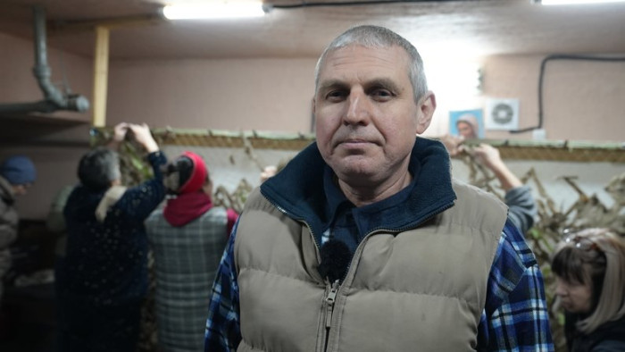 Ще на одній з локацій у Херсоні плетуть сітки для військових "Шалені бджілки". Назвали так команду, говориь волонтер Іван Брусенець, бо працюють щодня.