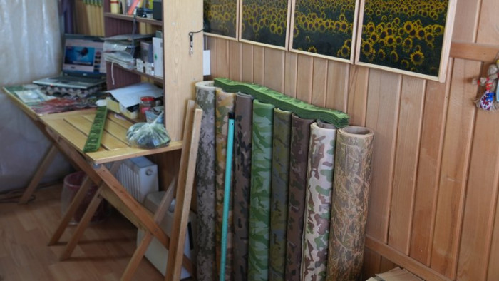 Нині в команді волонтера близько 30 людей, які працюють на трьох локаціях. Завдання Олега – зібрати гроші, закупити тканину та виготовити стрічки. У творчій лабораторії він підбирає кольори, малюнки і сам плете основу під маскувальну сітку.