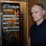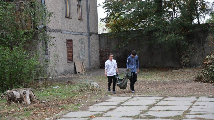 Місцеві жителі виносять уламки, які зібрали у власній квартирі після обстрілу російськими військами їхнього будинку. Херсон, жовтень 2025 року. Суспільне Херсон/Олександр Корняков