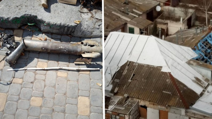 Залишки російського снаряда та побиті дахи після обстрілів. Фото надав Олег
