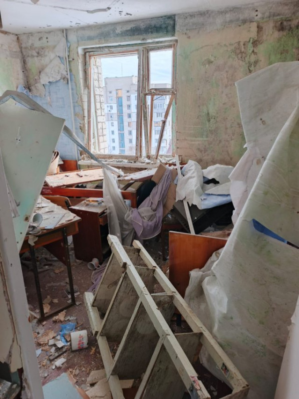 Наслідки удару по гуртожитку ХДУ 2 лютого 2026 року. Фото: Олександр Співаковський