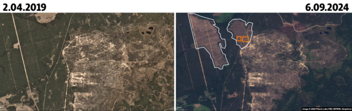 Нові фортифікації біля Гродно добре видно на супутниковому знімку, зробленому компанією Planet Labs 14 грудня 2024 року біля північно-західної частини полігону. Їх тут кілька.