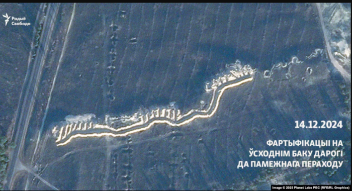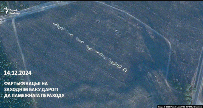 Як передає Укрінформ, ці фортифікації можуть бути частиною «вузла опору», який рік тому обіцяло збудувати міноборони країни, повідомляє білоруська служба «Радіо Свободи», яка отримала супутникові знімки території.