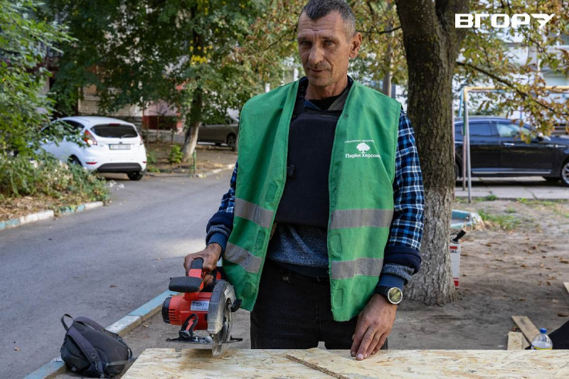 “Перші прильоти, вони найжахливіші та найнебезпечніші тому, що ми не знаємо, куди ворог прицілюється. Хлопці якраз по локаціях на вулицях, у вікна виглядають, заміряють і не ховаються, – розповідає майстер із будівельних та монтажних робіт КП “Парки Херсона” Євгеній Іващенко, – Минулого тижня прямо по тому будинку, який ми зашивали, почався обстріл. І все те, що на той момент вже зробили, повилітало – і додалось те, чого і не було”.