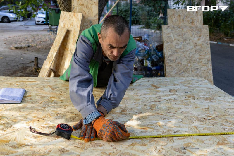 Через систематичні обстріли на правобережжі Херсонщини сильно страждають будинки та інші споруди. За даними Херсонської ОВА, пошкоджені або зруйновані вже 38 992 будівлі. Щоб уражені будинки не руйнувалися далі від дощів і снігу, працівники комунальної служби “Парки Херсона” забивають віконні та дверні отвори OSB-плитами. Також це – захист від мародерів. Комунальники працюють як одразу після масованих обстрілів, так і виїжджають на особливо небезпечні ділянки. Окрім цього, розпочато відновлювальні роботи дахів, пошкоджених обстрілами. Станом на зараз вже відремонтовано 34 дахи.
