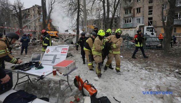Як повідомляв Укрінформ, унаслідок ворожого удару фактично зруйновано під’їзд п’ятиповерхового житлового будинку в Київському районі Харкова. Повідомлялось про десятьох постраждали, зокрема, хлопчиків 6 й 11 років та 17-річну дівчину.