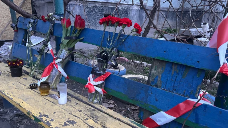 Внаслідок обстрілу російських військових 1 березня у мікрорайоні «Шуменський» в Херсоні загинули дві жінки. Люди принесли на місце атаки квіти.