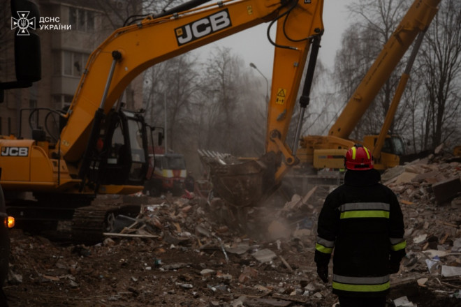 "Рятувальники працюють безперервно, розчищають зруйновані конструкції, вивозять уламки та шукають людей — тих, хто міг опинитися в зоні руйнувань", — зазначили у ДСНС.