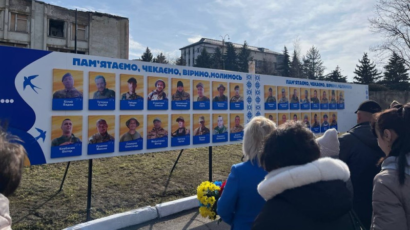 Місцеві жителі розмістили на стендах портрети своїх рідних і близьких, які зникли безвісти або перебувають у російському полоні. За даними у дописі, наразі їх 31.