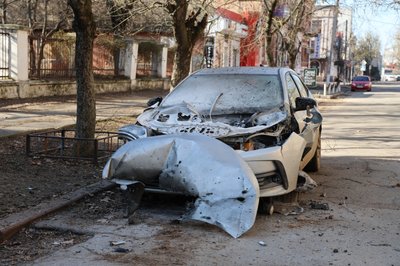 Цивільний автомобіль після атаки російського безпілотника у Херсоні, березень 2026 року. Суспільне Херсон/Олександр Корняков